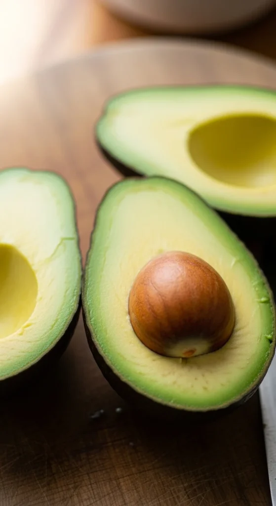 - Cut avocados in half and remove pits