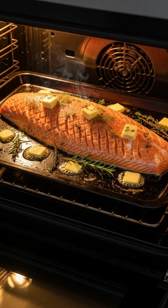 This butter melts into the salmon as it bakes, creating a silky, restaurant-style texture.