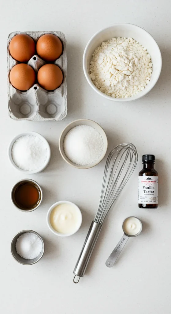 Angel food cake stands out because it’s made without butter or oil. Instead, stiffly beaten egg whites provide the structure. Sugar sweetens and stabilizes the meringue, while cake flour keeps the crumb delicate. The key is aeration—you’re essentially baking sweetened clouds into cake form.