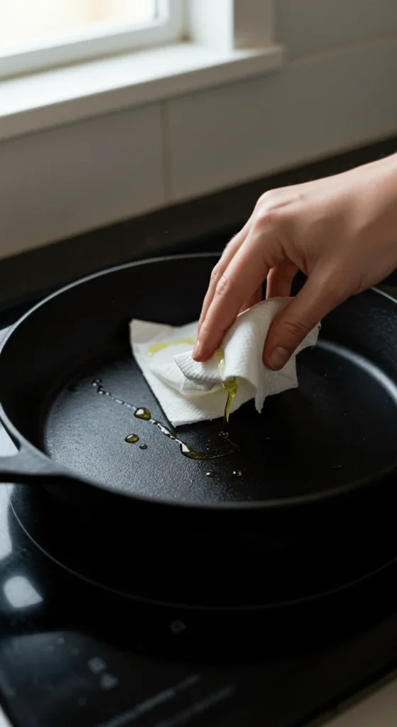 - Uneven color: Keep seasoning thin and repeat the oven method 2–3 times to build uniform layers.
