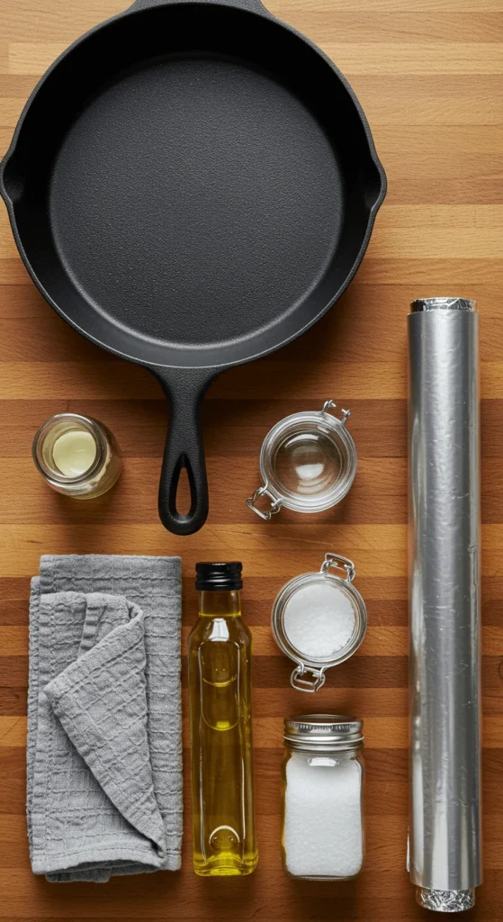 - Steel wool or coarse salt (for cleaning before seasoning, if needed)