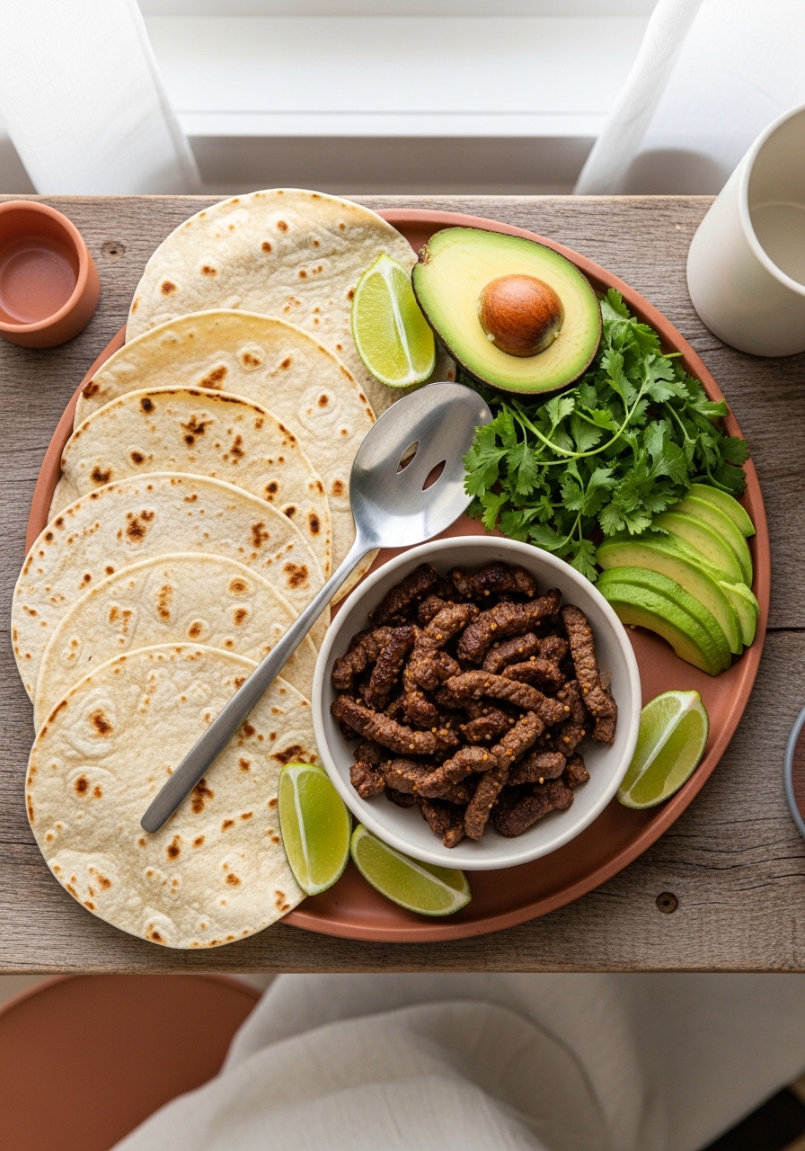 - Serve with warm corn or flour tortillas, chopped cilantro, diced onion, and lime.