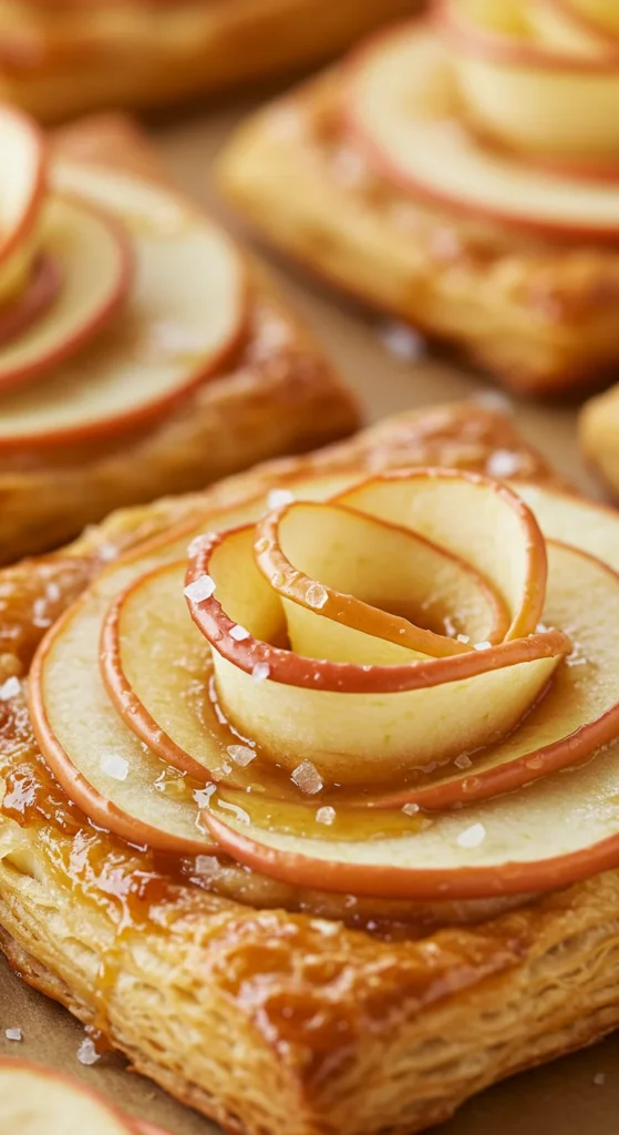 - Lay puff pastry on a sheet. Arrange apple slices.