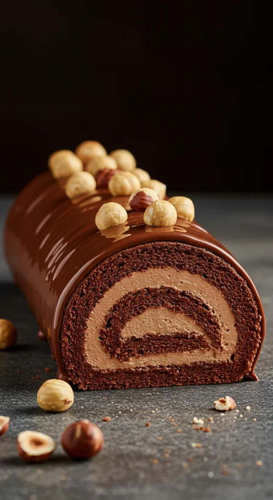 The timeless version—moist sponge cake rolled with chocolate cream and coated in ganache.